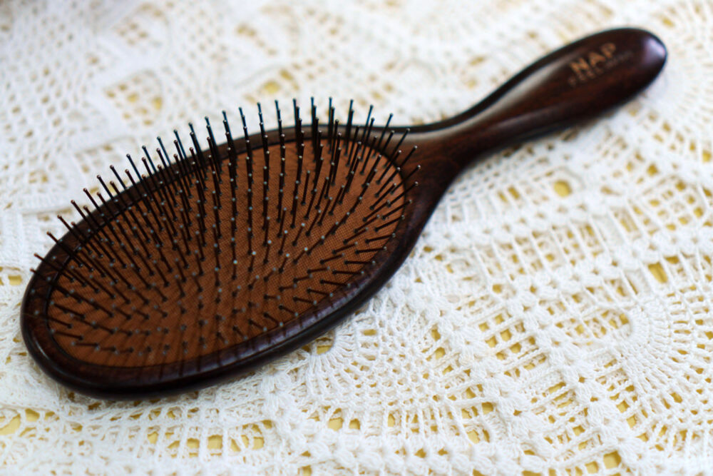 ピン部分にチタンコーティングを施したヘアブラシ。